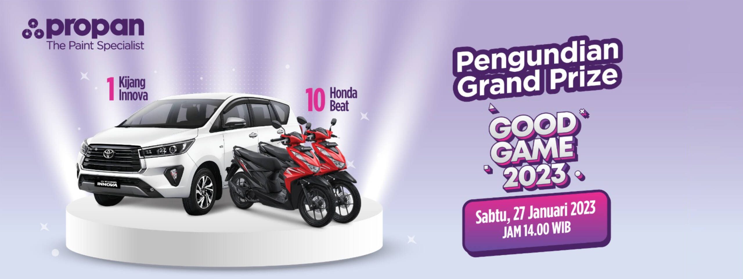 Good Game 2023 adalah program yang berlangsung dari tanggal 1 Februari 2023 sampai 15 Januari 2024. Setiap pembelian cat tembok Propan (Decor series, eco series, visko series, ceria anti bocor, dan ceria Interior) senilai Rp.399.000 berlaku kelipatan, akan berkesempatan memenangkan hadiah langsung Logam mulia 0,5 gram, kaos, tumbler, jam dinding, roll, dan kopi. Selain itu, konsumen juga berkesempatan memenangkan hadiah Grand Prize 1 unit mobil Kijang Innova dan 10 unit motor Honda Beat.