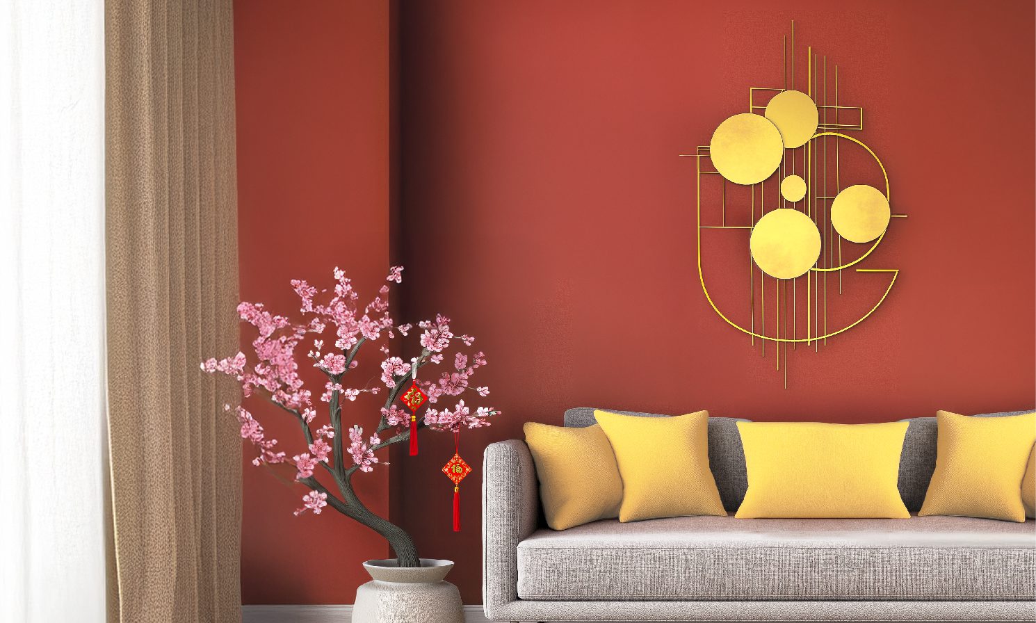Refleksi Cahaya Warna emas memiliki kemampuan untuk memantulkan cahaya, membuat ruangan terlihat lebih terang dan luas. Ini sangat cocok untuk ruangan dengan pencahayaan alami yang minim.